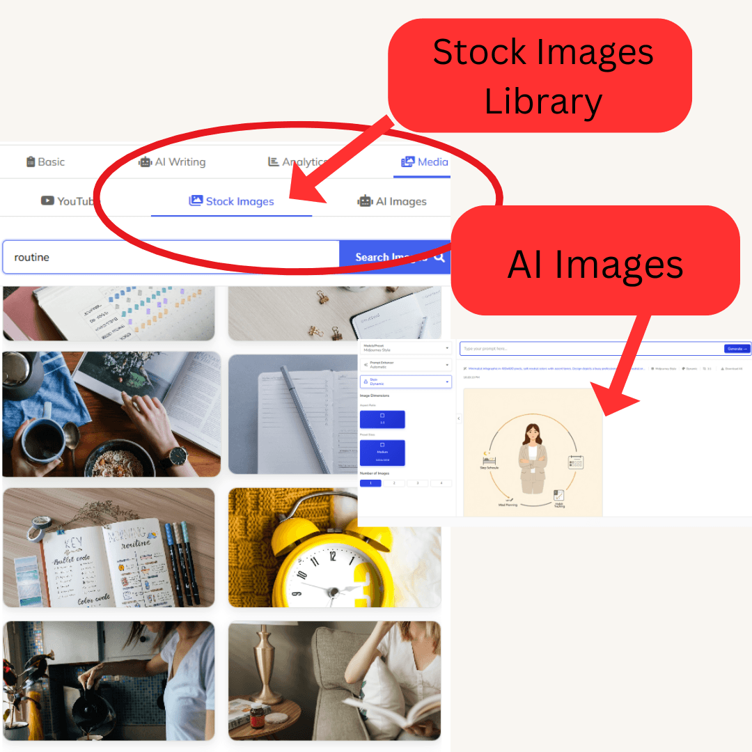 AI image generation and stock photo integration