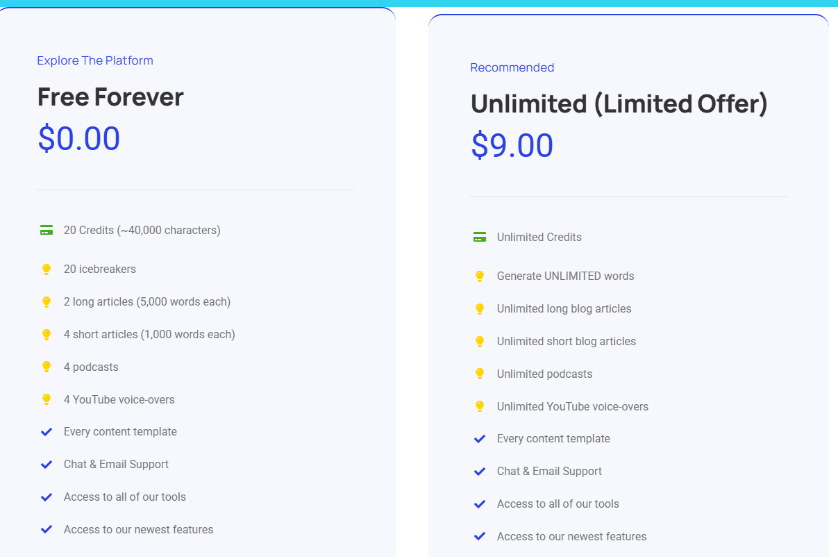 Here's how Writecream compares in terms of pricing and features: